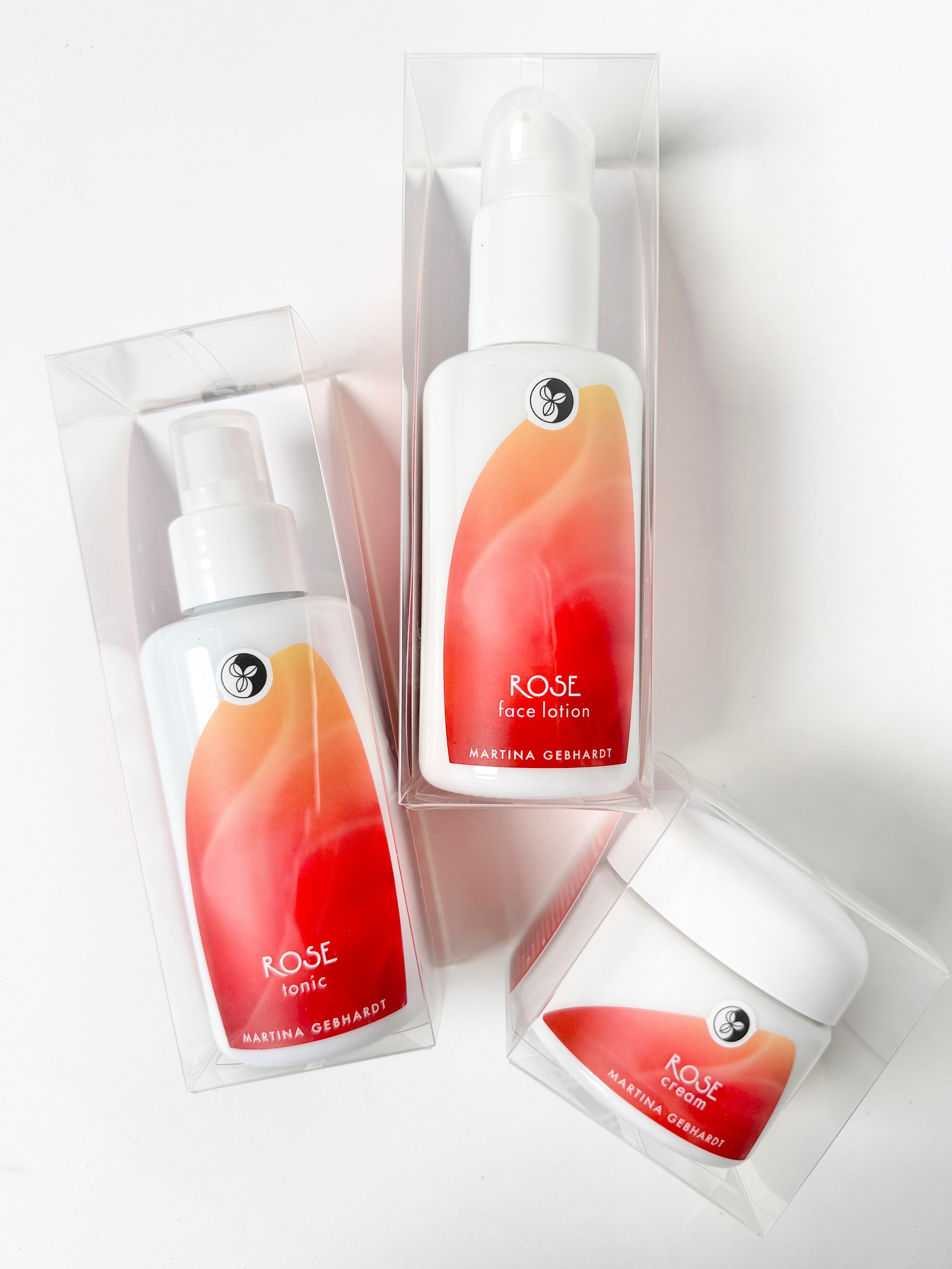 水、エタノール**、ダマスクバラ花エキス**、カニナバラ果実エキス*、ハイビスカス花エキス**、ハマメリス花水**、香料**(*はbio、**はdemeter)